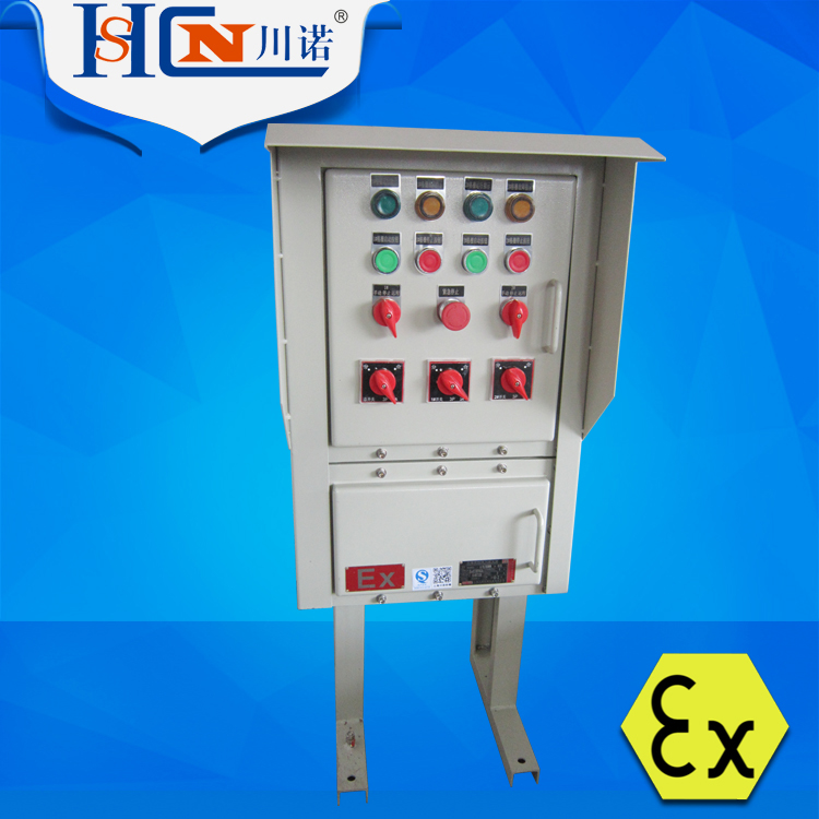 B、非標(biāo)配電箱:外殼采用鋼板焊接成型,表面噴塑。分主腔和接線腔,均采用隔爆型結(jié)構(gòu),內(nèi)可選裝高分?jǐn)鄶嗦菲鳌⒔涣鹘佑|器、熱繼電器、控制按鈕、信號燈等元件,通過操作殼蓋上的手柄實現(xiàn)分合,動作性能可靠,并設(shè)有分合顯示信號燈。進(jìn)出線采用鋼管或電纜布線均可,進(jìn)出線口方向及內(nèi)部元件可由用戶要求而定。其它材料及外形均可根據(jù)用戶要求訂制。
